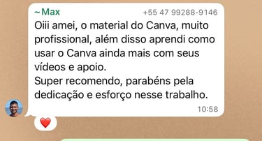 Sou expert em Canva, com mais de 3 anos de experiência e, ao longo desse tempo, ajudei muitas profissionais da saúde a transformarem suas redes sociais com materiais visualmente profissionais, estratégicos e prontos para uso.